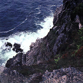 VARNING! nKullabergs natur är omväxlande och spännande.Till detta bidrar de branta stupen, särskilt ut mot havet. Gå aldrig för nära branten och klättra inte i den om du inte är utbildad. Undvik klipporna längst ned vid havskanten. De kan vara hala och havet är oberäkneligt genom vågor, strömmar och virvlar. Håll särskilt uppsikt på barnen! Stup och klippor är tilldragande lekplatser men livsfarliga! Tyvärr har alltför många tragiska olyckor hänt här. |
